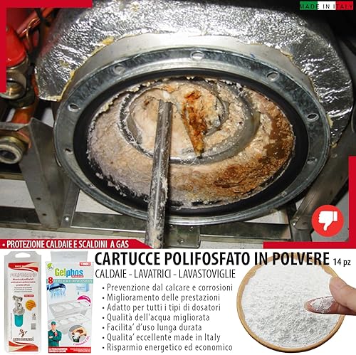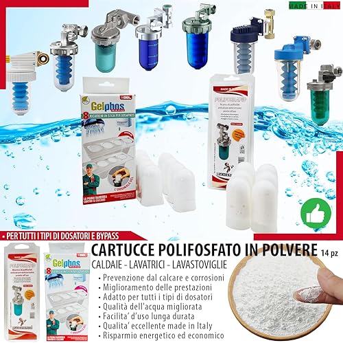 Gelphos Rapid 8 Ricariche Polifosfati per Caldaia Ricarica + 6 Cartucce Polifosfati per Caldaia - 14 pz Polifosfati per Caldaia Ricarica pronti all'uso per Dosatore Polifosfati