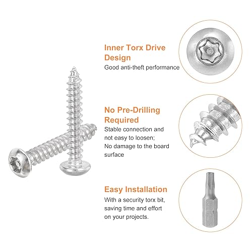 QUARKZMAN M4 x 25mm Viti per Lamiera Sicurezza Torx a Testa Tonda, 10pz Viti Autofilettanti Antifurto Acciaio Inossidabile 304, Viti per Legno Antifurto Punta T20 (Argento)