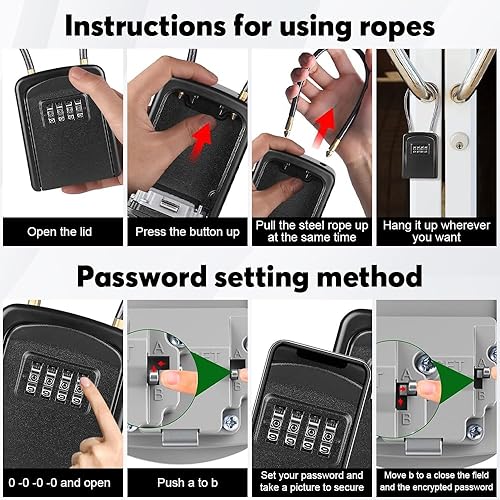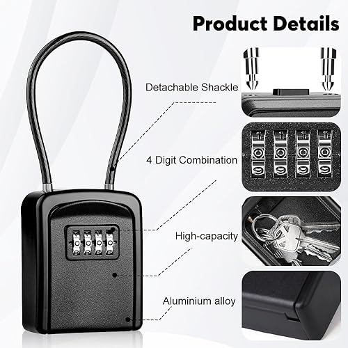 Cassetta di Sicurezza per Chiavi, Impermeabile Cassaforte Chiavi con Gancio Portachiavi con 4 Cifre Combinazione Codice Esterno Archiviazione per Casa Fabbrica Garage Scuola Ufficio Viaggio
