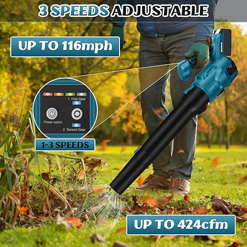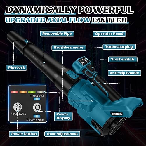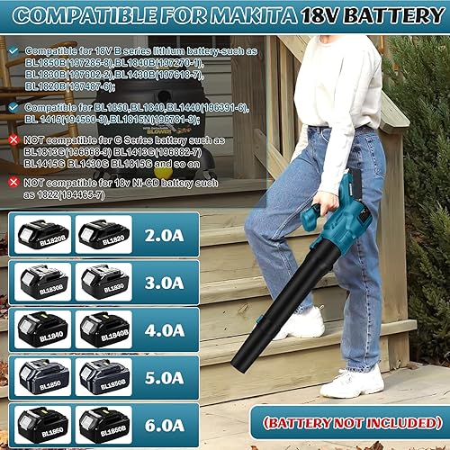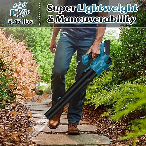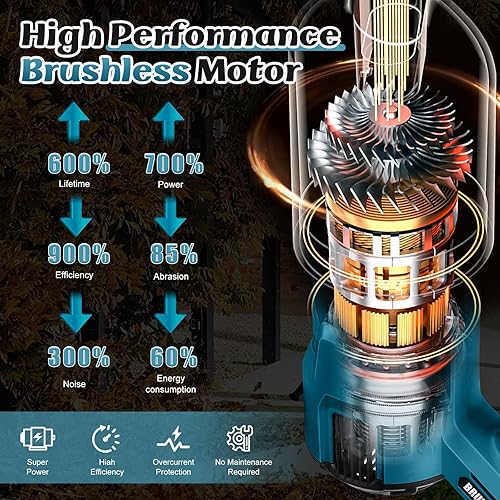 Soffiatore a Batteria Compatibile con Makita 18V, Professional Brushless, Soffiatore Foglie Elettrico, per la Cura del Prato, Auto Velocità Dell'aria 188km/h, Volume d'aria 720m³/h (Senza Batteria)