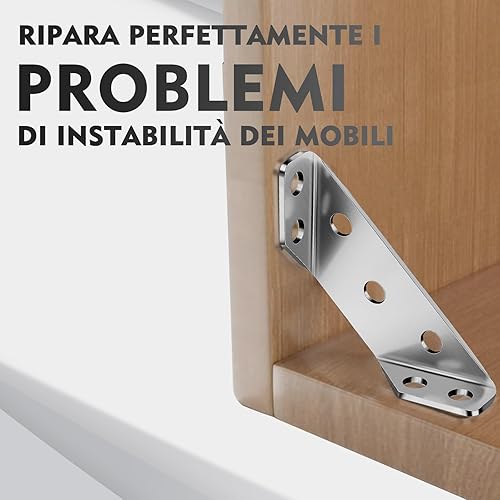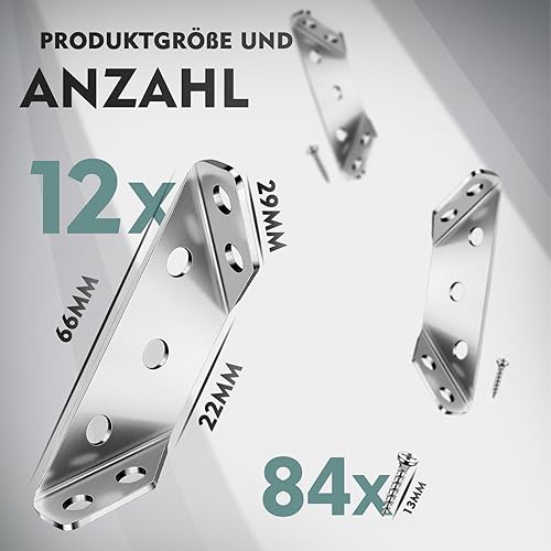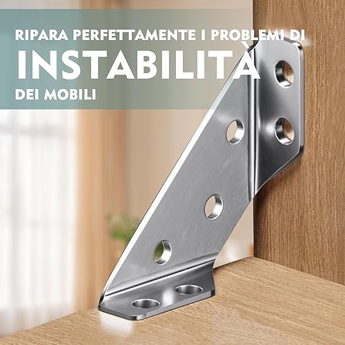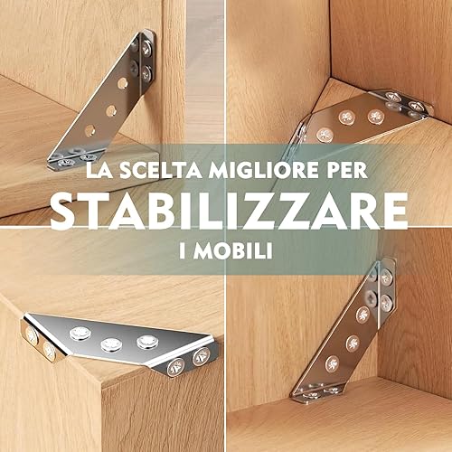 Squadrette Angolari, Staffe Angolari in Acciaio Inox, 24 pezzi, Angolo in Metallo con 140 viti, Staffe Angolari in Acciaio Inox, per Mobili, Sedie, Tavoli,Finestre, staffe angolari