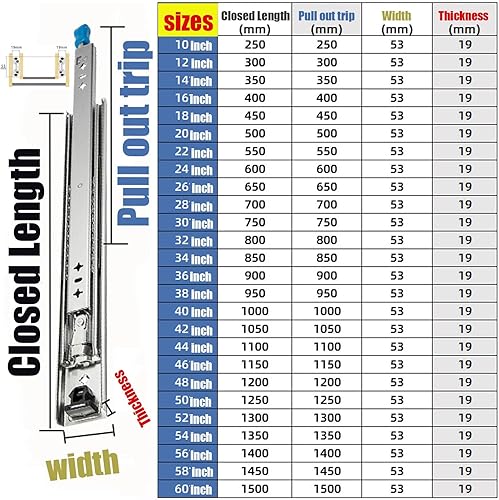 Guide per Cassetti Pesanti con Serratura 450 550 750 850 950 1100 1200 1500mm, Guide Scorrevoli Cassetti capacità di Carico Fino A 120kg, 3 Pieghe Guide A Cuscinetto A Sfera(Size:1000mm)