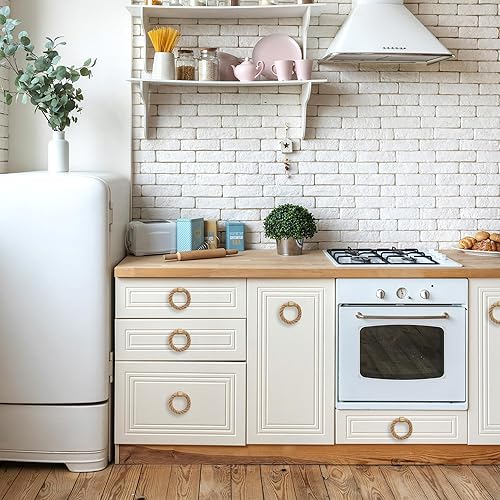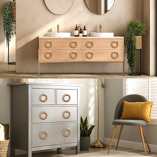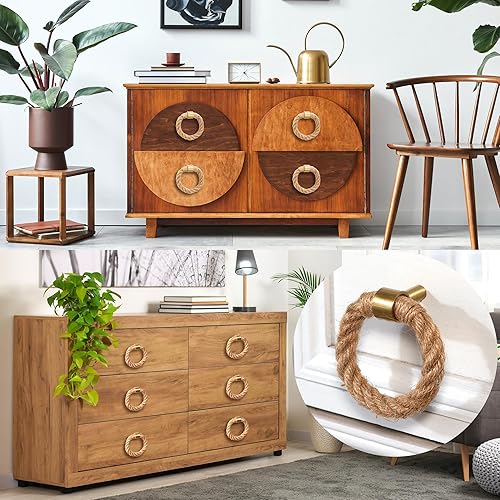 EureKaEr 6 maniglie per cassetti nautici in ottone dorato, monoforo, in iuta e corda, per mobili nautici