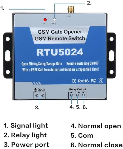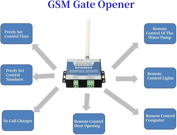 RTU5024 Apricancello GSM,Telecomando Apricancello Universale,Interruttore Relè DC 9‑24v Apriporta Senza Fili Telecomando Per Porta Garage, Interruttore Spegnimento SMS Gratuiti