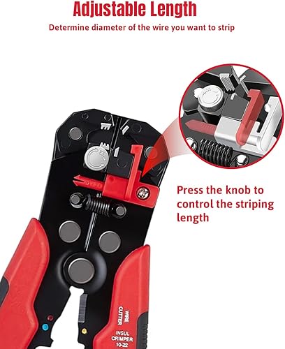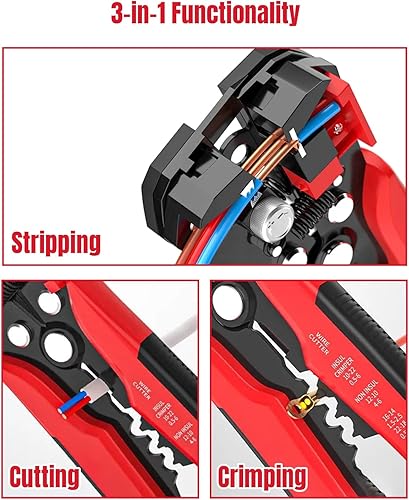 Spelafili Elettricista, Pinza Crimpatrice Automatica, 3 in 1 Tronchese Autoregolante, Pinza Capicorda per Tagliare, Spelare 10-22 AWG con Interruttore Rotante Regolabile per Elettricisti