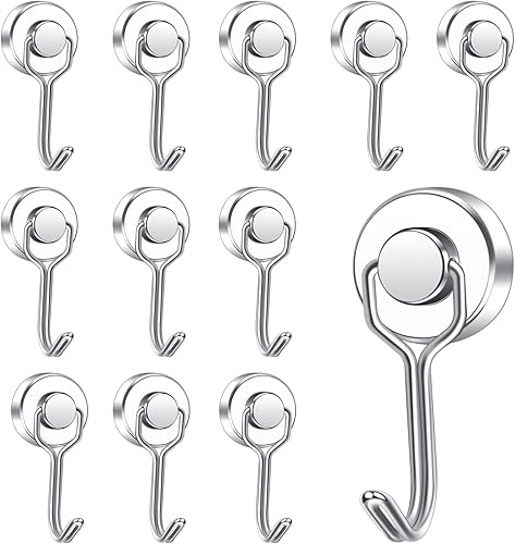 12 Pezzi Ganci Magnetici Ultra Forti 20mm Magneti in Neodimio con Adesivo Ganci Magnetici Rotanti per Cucina Supporti per Griglia Armadietti Frigoriferi Ufficio e Altri Utilizzi
