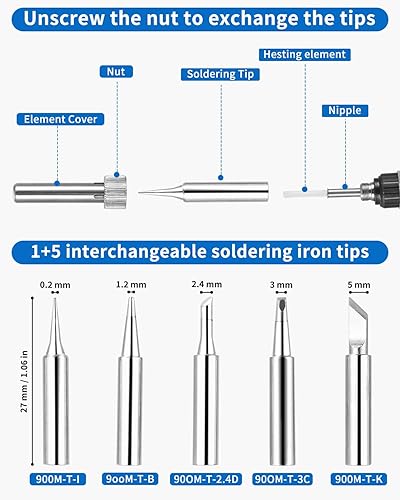 Saldatore a Stagno, Saldatore Kit 110W,Temperatura Regolabile180 ℃-500 ℃ Stagnatore Elettrico,Stagnatore Elettrico con ON/OFF con 5 Punte di Saldatura,per Saldatore per Saldature di Riparazione