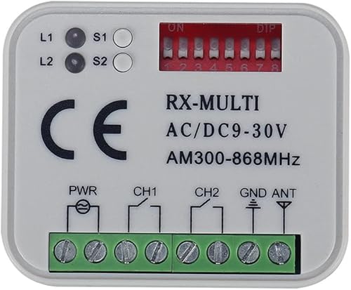 Ricevitore Interruttore 300-868MHz Ricevitore Universale AC/DC 9-30V per Interruttore Garage Controllo Porta Garage