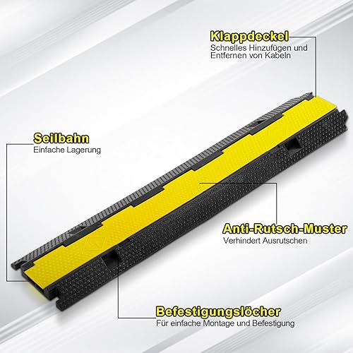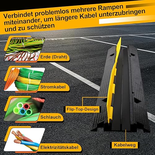 Ponte cavi 3 pezzi 2 canali, 101 x 25 x 5 cm, ponte per cavi in gomma, design modulare, protezione per cavi per parcheggi (nero)