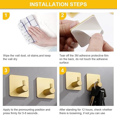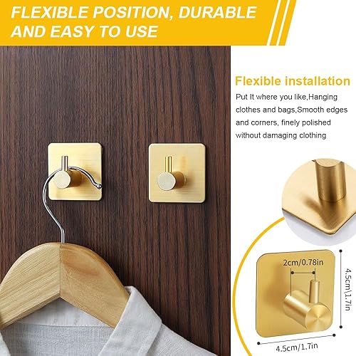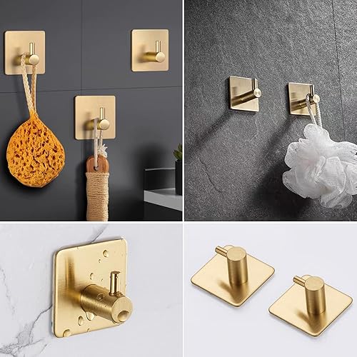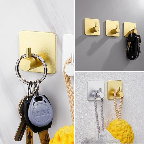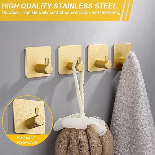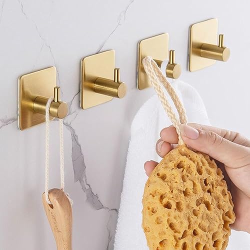 Set di 6 Ganci Adesivi in Acciaio Inossidabile Oro,Ganci appendiabiti e portasciugamani,Ganci Adesivi per Appendere Oggetti per Cucina e Bagno Senza Forare