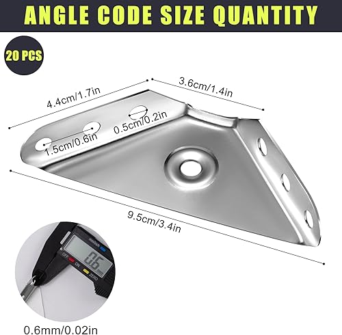 Staffe Angolari Grande Angolari Metallo Per Legno Supporti Triangolari a Forma di Angolo Squadrette Triangolari Connettori Angolari Con Viti 20 Pezzi