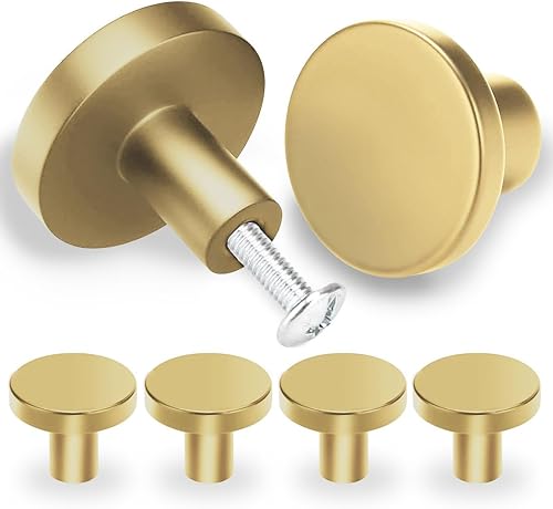 6 Pezzi Pomelli per Mobili, 25 * 30 mm Pomelli per Cassetti, Rotondo Pomelli, Pomolo per Mobili con Viti, Pomelli Armadio, Manopole per Mobili, per Armadietti, Cassettiere, Cucina (Oro)