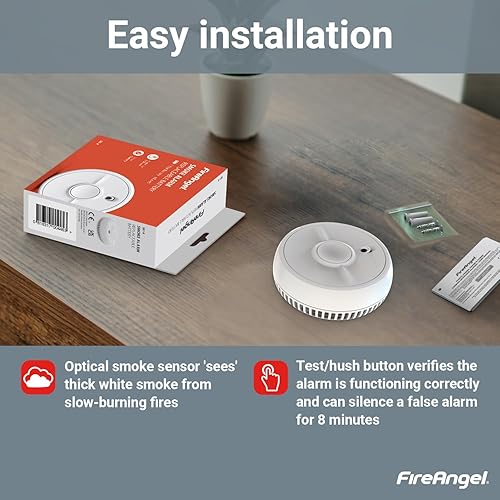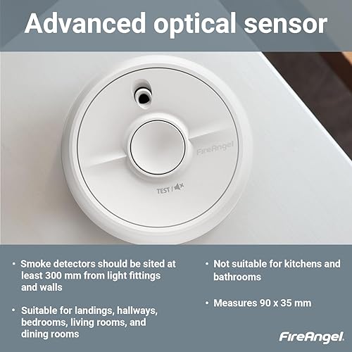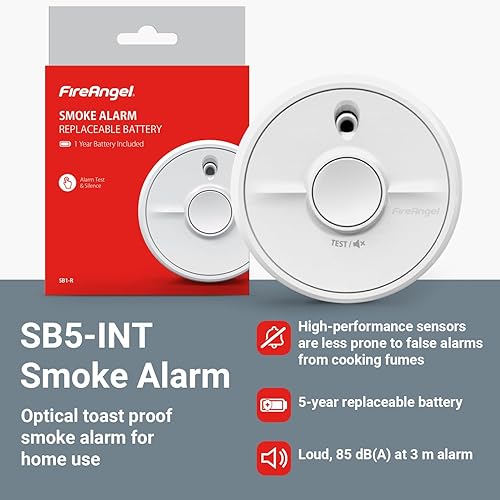 FireAngel SB5-INT Allarme Antincendio - Rilevatore Fumo Ottico per Casa con Batteria - Sensore Fumo Precoce - 90 x 35 mm - Bianco
