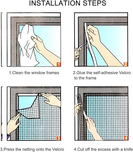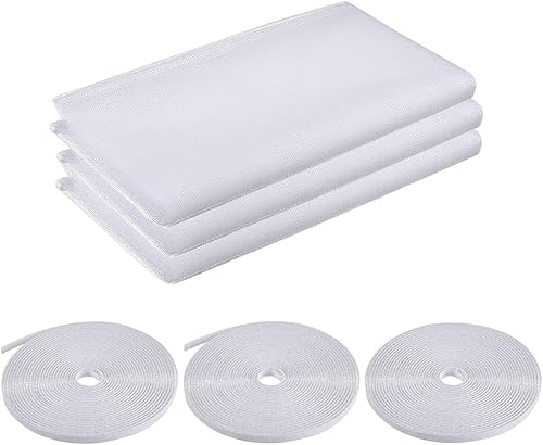 3 Pezzi Zanzariera per Finestra, 150 x 200CM Universale Rete Zanzariera con 3 Nastri Autoadesivi, Lavabili Protezione per Insetti Fai da Te Net della Finestra per Casa Ufficio (Bianco)