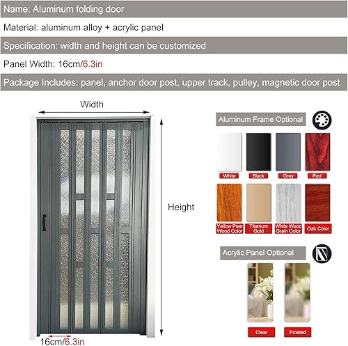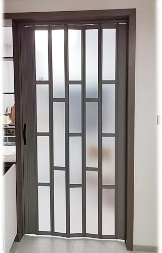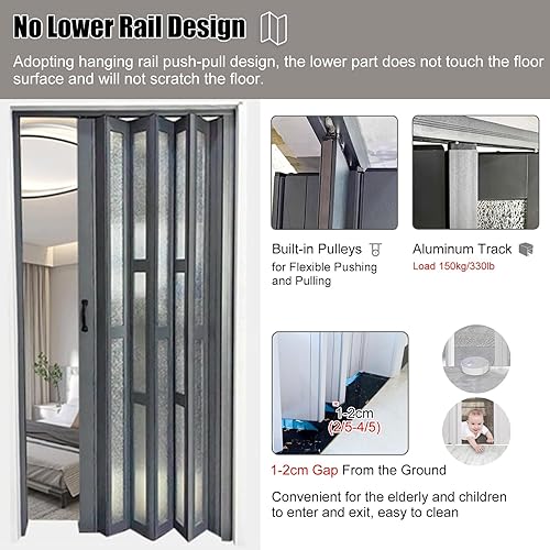 Porta Divisoria Pieghevole in Alluminio Alta 190 195 200 205 210 CM, Porta Scorrevole A Fisarmonica Interna con Acrilico Satinato per Cucina, Bagno, Dispensa(Gray,90x200cm/35.4x78.7in)