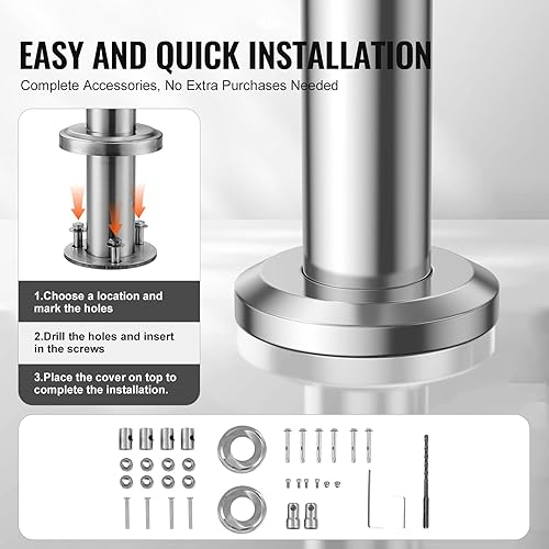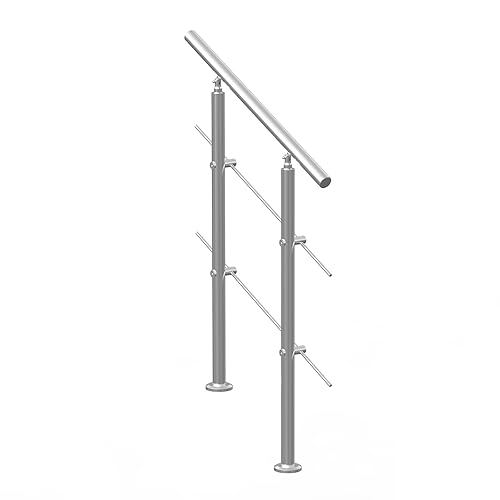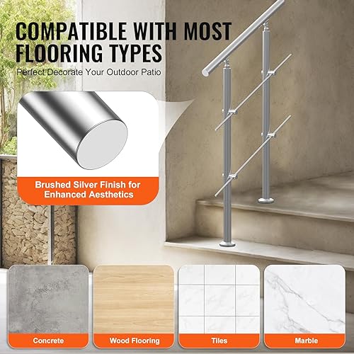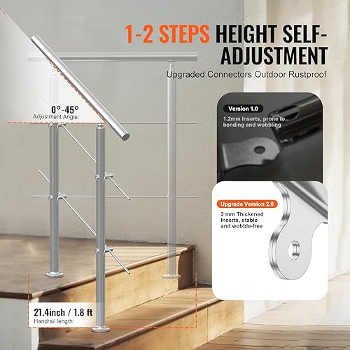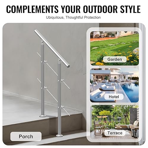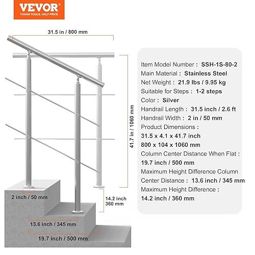 VEVOR Corrimano per Gradini Esterni, Kit Corrimano per Scale 2 Traverse 80 cm Lunghezza, Ringhiere Transizione Acciaio Inox Kit Installazione, Corrimano Scale Doppia Colonna per Veranda e Terrazza