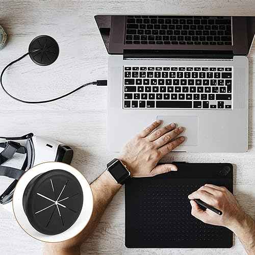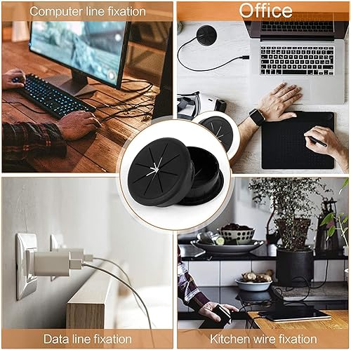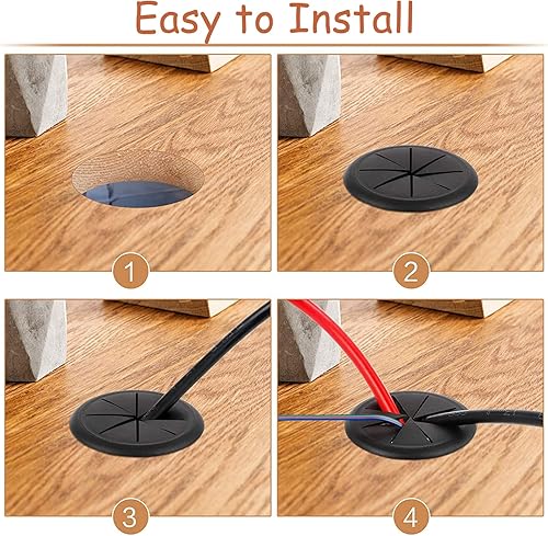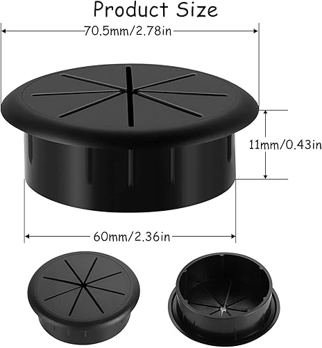 4 occhielli da scrivania in plastica, colore nero, con occhiello da scrivania, flessibile, passacavi da 60 mm, passacavi tondi da incasso, occhiello da scrivania, foro per cavo per tavolo scrivania