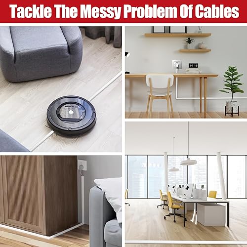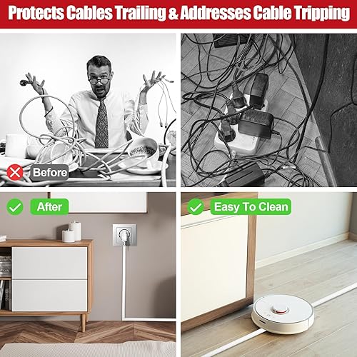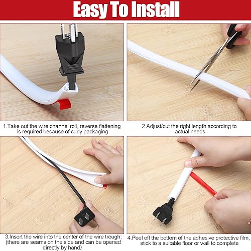 Piccolo canale flessibile per cavi, autoadesivo, per pavimento in PVC, protezione per cavi da pavimento, con forbici, facile da tagliare, montaggio per tutti i cavi di alimentazione a casa, ufficio,