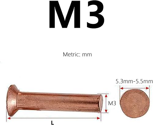 Rivetti svasati in rame M3 x 25 mm di lunghezza, testa piatta solida rivettatura corpo liscio fissaggio a percussione materiale conservante (40 pezzi)