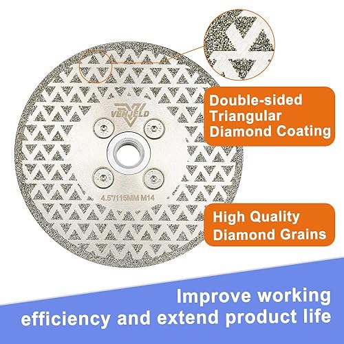 Disco Diamantato per Taglio e Smerigliatura - 125mm Lama per Sega per Granito Marmo Ceramica Gres Porcellanato Pietra Quarzo con Flangia M14 Doppio Lato Elettrolitica