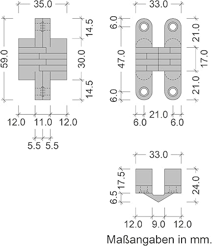 Cerniera a forare Gedotec in look acciaio inox | 2 pezzi - cerniera in legno in metallo | VICI | Cerniera a trapano nichelata spazzolata 12 x 45 mm | Cerniera per porta da avvitare con un angolo
