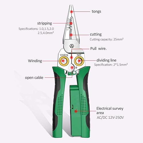 Pinza spelafili multifunzione 8 in 1 Super Easy per tagliare e tirare fili, spelafili con funzione di misurazione della corrente, forbici per raschiare e spremere fili
