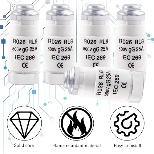12 Pezzi Fusibili Ceramica Spirale R026 D02 25A gG Diazed Fuse Links 500VAC Inserto Fusibile Ceramica Fuseper Cavi e Protezione Linea