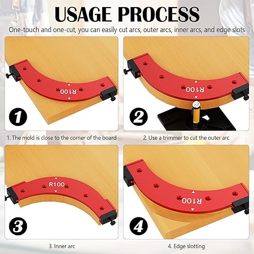 4 Pezzi Raggio Jig Router Templates, Raggio Jig Router Templates, Ausiliario Per Taglio Ad Arco Per Tavola Di Legno In Lega Di Alluminio, Strumento Di Posizionamento Del Bordo Dell'arco