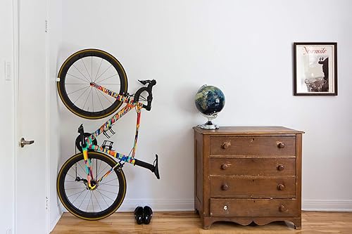 CLUG hybrid Supporto da parete per bici, ideale per pneumatici da 33-42 mm, portata massima 8-20 kg, Bianco/Arancio