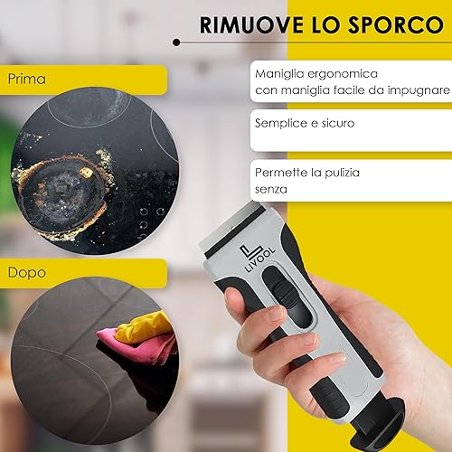 Raschietto Vetro Professionale + 10 Lame | Raschietto Piano Induzione | Lama per Pulire Vetri e Bicchieri in Vetroceramica