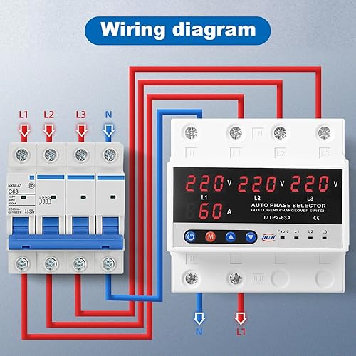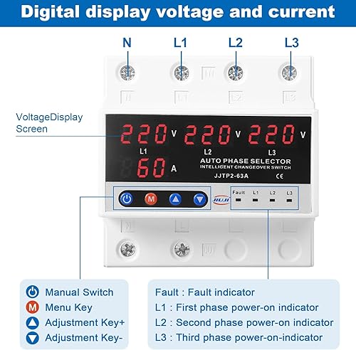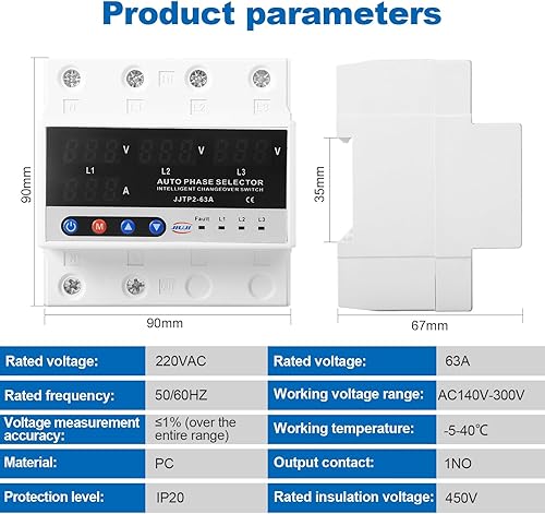 Dispositivo di Protezione da Sovratensione e Sottotensione, Stabilizzatore di Tensione 220v 63A Protezione Sovratensione Regolabile Trifase (Dual Display)