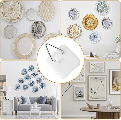 COYUN 12 Pezzi Ganci Autoadesivi Invisibili, Autoadesivi per Piatti con Gancio Ganci Gancetti Adesivi per Muro, per Appendere lastre di Plastica, Orologio,Foto, Pittura, Piatti, Appendi Quadro