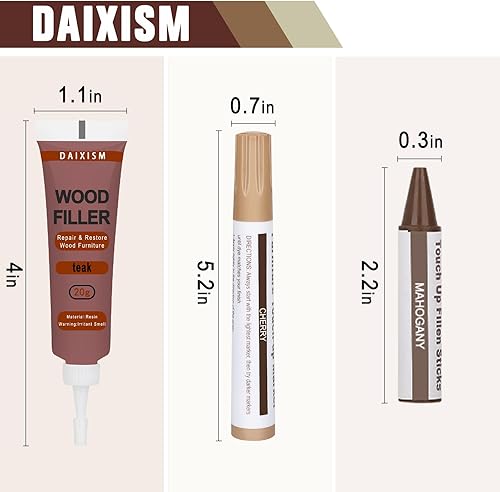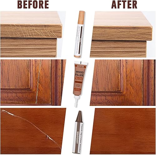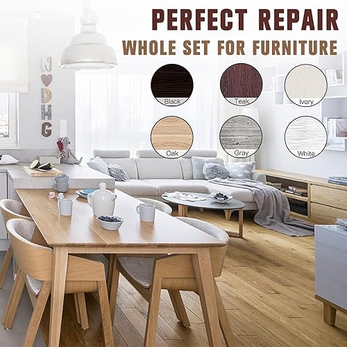 CHUKCHI Kit di riparazione per mobili in legno, set di 39 pennarelli per ritocchi, riempitivi con mastice per legno, riparazione graffi, crepe, fori, scolorimento per porte in legno