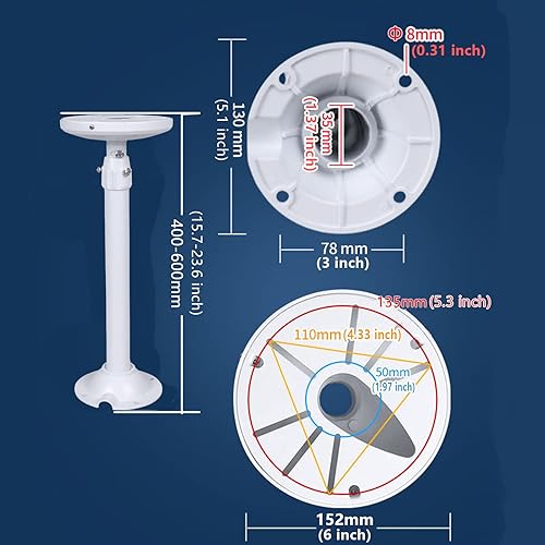 WiTi Base 6 Pollici Estensibile Staffa Montaggio su Palo per Telecamere IP CCTV,40CM-60CM Palo Montaggio Regolabile per il Sistema Telecamere Sorveglianza di Sicurezza,Metallo Solido