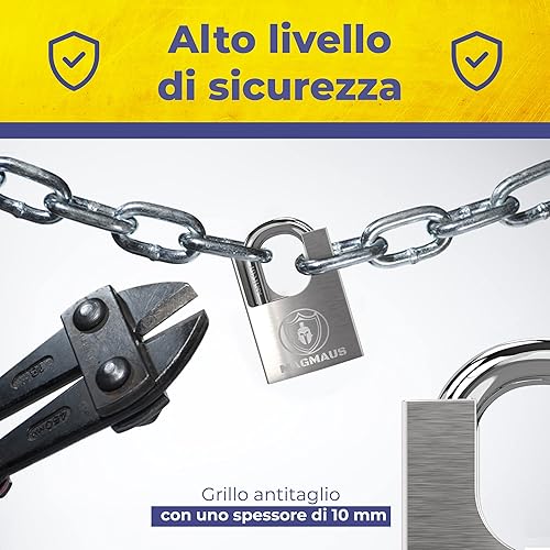 SDL/50 [Anti-ruggine] Lucchetto blindato esterni impermeabile - [grillo antitaglio alta sicurezza] - ideale per serratura cancello, capanno o container