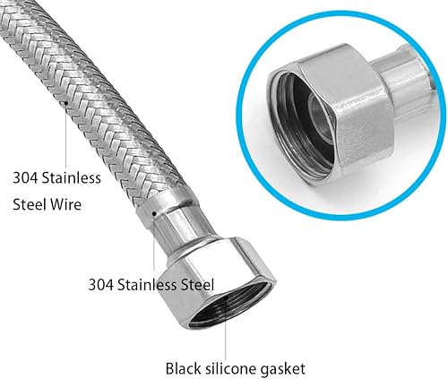 2 Pezzi Tubo Flessibile Intrecciato In Acciaio Inossidabile 60cm Tubo Flessibile Doccia per Rubinetto 1/2'' Tubo Doccia Flessibile per Lavandino Cucina Bagno