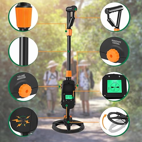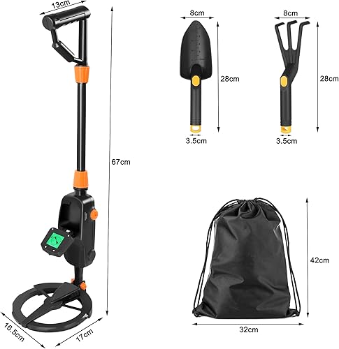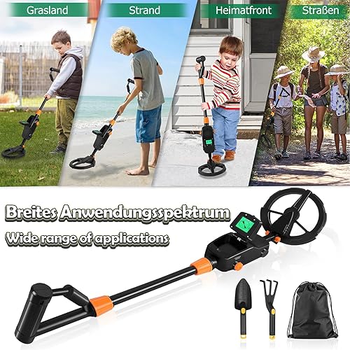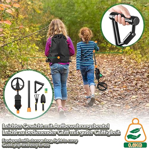 Metal Detector, rilevatore di metallo, per bambini, rilevatore di metallo, con zampe, borsa zaino e batterie, display LCD e allarme acustico, per bambini e adulti