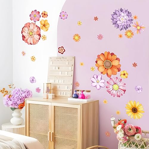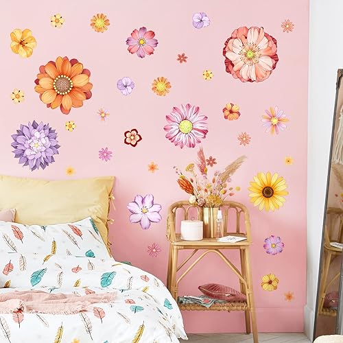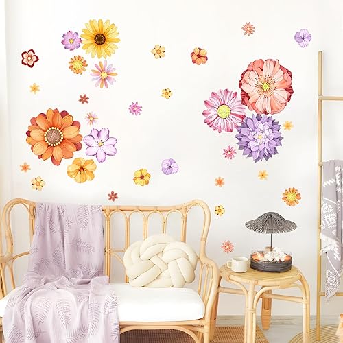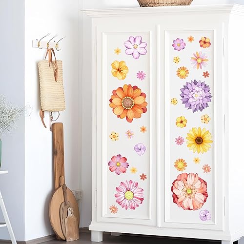 Supzone Adesivi Murali Fiori Decorazioni Muro con Margherite Colorate, Motivo Naturale, Adesivi da Parete Autoadesivi Rimovibili per Soggiorno e Camera da Letto, Vetrofanie Primavera