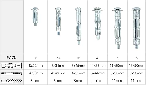 Confezione da 68 tasselli metallici con cavità, M8/M11/M13, tasselli con cavità in acciaio zincato per carichi da leggeri a medio-pesanti