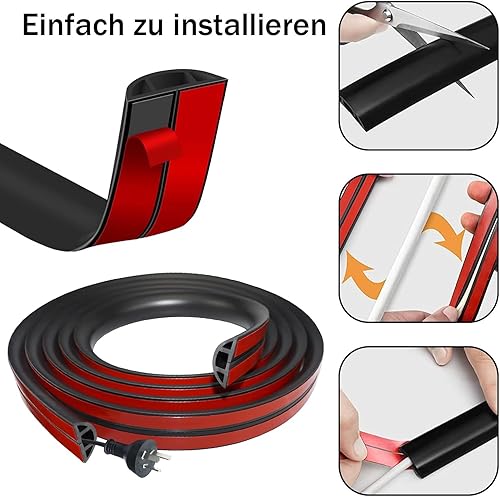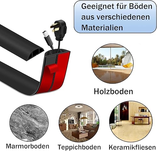 Protezioni per Cavo a Pavimento Autoadesiva, Canalina Copricavo Semicircolare, Canalina 20 mm (L) x 10 mm (A) x 3 Metri di Lunghezza, Ponte per Cavi Elettrici Domestici, Protezione per Cavi, Nero