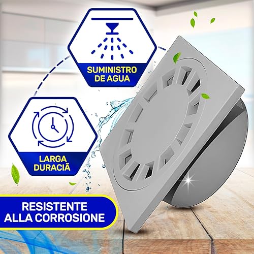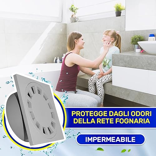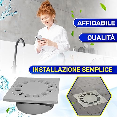 Piletta Doccia Pavimento 100 x 100 mm in Verticale con Griglia Quadra - Garanzia di 10 Anni - MADE IN ITALY - MONTERAL