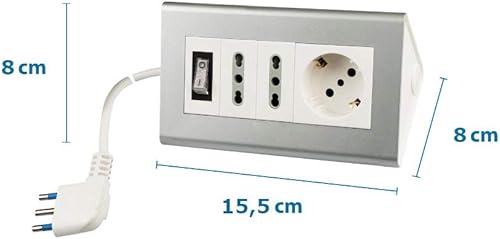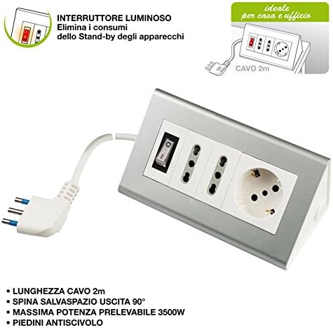PP2590S Ciabatta Multipresa da Scrivania - Multipresa Elettrica 2 Prese Bivalenti e Presa Schuko - Ciabatta Elettrica Cavo 2 m e Interruttore