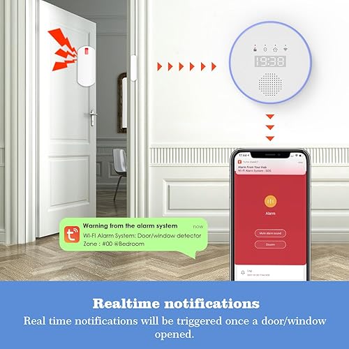 Antifurto casa con 15 pezzi, Allarme casa senza fili, 2.4G/5G Allarme casa con 1 PIR Sensore, 10 Sensori Per Porte E Finestre E 1 Sirena E 2 Telecomandi, Tramite App, Compatibile con Alexa
