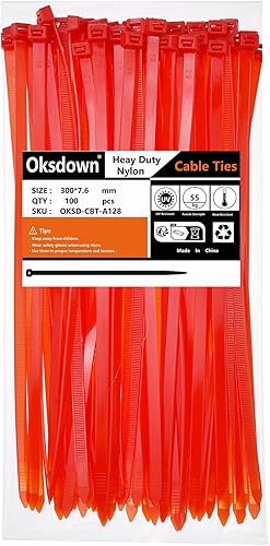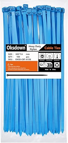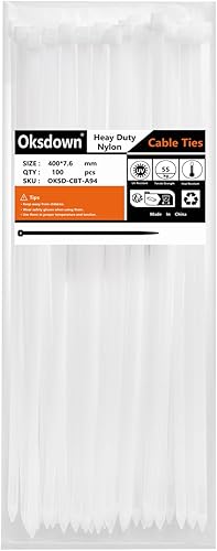 Oksdown Heavy duty Nero Fascette Plastica per Cavi Stringicavo 100 Pezzi 7,6mm x 300mm Nere Grande Nylon Fascette Elettricista per Gestione dei Cavi Elettrici Giardinaggio