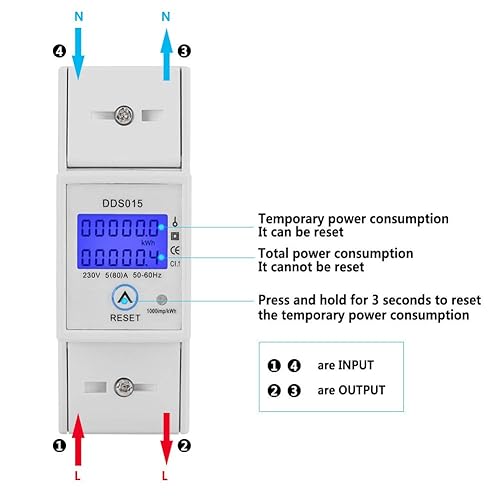 Contatore di energia monofase 5-80A 230V 50Hz, DDS015 Digital LCD Energy Meter Watt Meter Montaggio su guida DIN