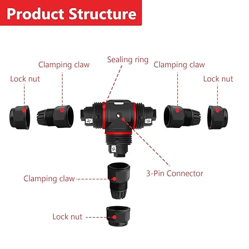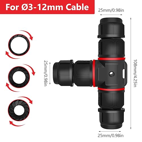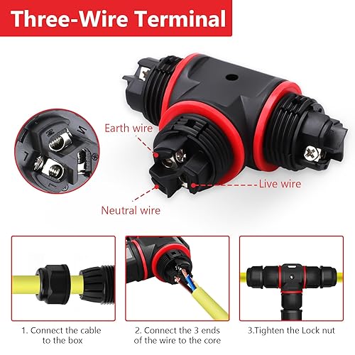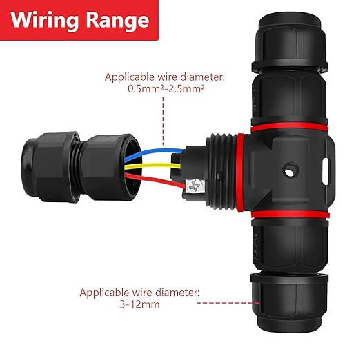 3 pezzi Connettore per Cavi, Scatola di Giunzione Impermeabile IP68 a Forma di T, Scatola di Giunzione per Cavi di Terra a 3 pin per Cavi di Diametro Ø3-12 mm, con Cacciavite