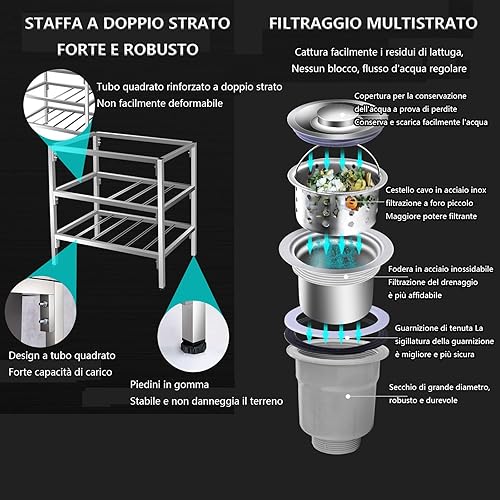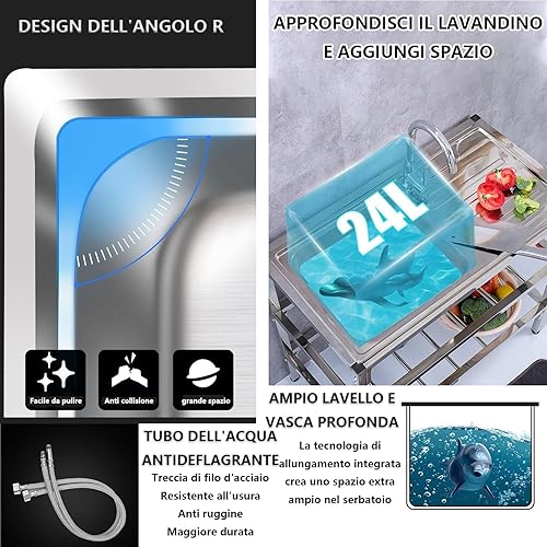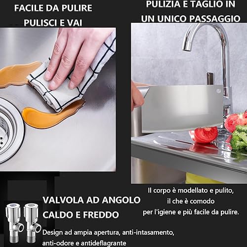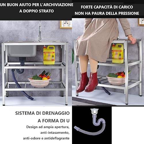 Lavandino da esterno a libera installazione,Inossidabile con il Rubinetto Girevole 360°, tavolo da preparazione con console e supporto,Facile da pulire,per Garage, Cucina. (Size : Single layer)