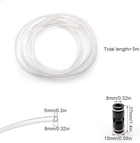 8 mm di Diametro Esterno/ 5 mm di Diametro Interno Tubo Dell'aria in PU e Connettore Pneumatico PU8, Lungo 5 m Trasparente Tubo Dell'aria in Poliuretano, per Utensili Pneumatici