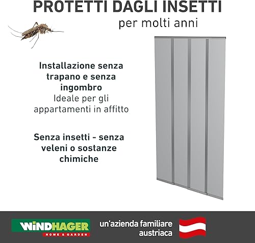 Windhager Zanzariera Plus Tenda per Porta Zanzariera a lamelle Facile, accorciabile Individualmente, 95 x 220 cm, Antracite