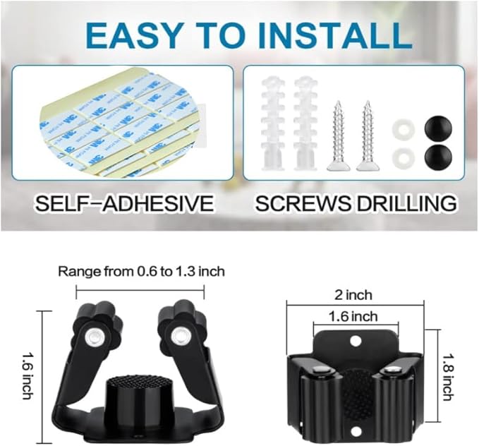 6 supporti per scopa da parete, con vite, in acciaio inox ad alte prestazioni, mocio e porta scopa, per la pulizia della biancheria, bagno, cucina, garage (nero)